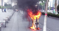 山東青島路邊垃圾桶著火司機(jī)齊心把火滅