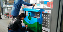 藍(lán)天白云清新美麗,可愛卡通天真童趣。鄭州快速公交站臺內(nèi)兩個原本普普通通的環(huán)保果皮箱,經(jīng)過一番裝扮與改造,成為了兩個別具藝術(shù)氣息的環(huán)保果皮箱。這兩個環(huán)保...