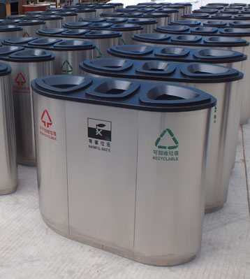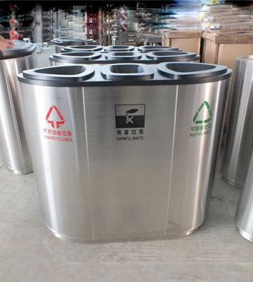 使用客戶:廣西南寧商場物業(yè)不銹鋼三分類垃圾桶 發(fā)布時間:2018-08-08