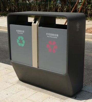 戶外鋼制分類垃圾箱桶頭細(xì)節(jié)圖