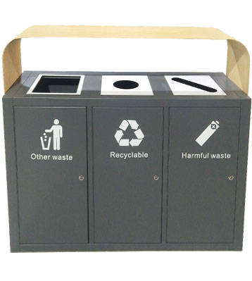 欣方圳三分類仿木紋鋼制烤漆垃圾桶批量生產(chǎn)圖