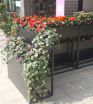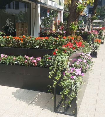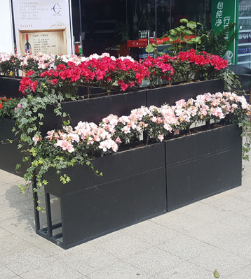商業(yè)街戶外雙層組合金屬烤漆花箱實(shí)景圖