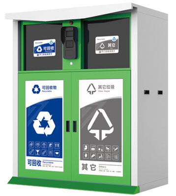 • 產(chǎn)品特點:智能垃圾分類回收箱分別回收紙張、塑料、金屬、玻璃、紡物、有害、廚余、其他等八種常見可回收再生資源。內(nèi)置智能自動稱重模塊,后臺時刻檢測回收箱垃圾重量,滿溢自動停用功能并自動發(fā)送預警信息及時清運;帶感光燈控開關傍晚會自動開啟照亮功能;用戶身份識別系統(tǒng),可追塑垃圾投放來源;后臺數(shù)據(jù)統(tǒng)計,積分兌換禮品。