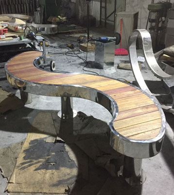 不銹鋼S型休閑椅-不銹鋼木板拼接休閑椅廠家定制