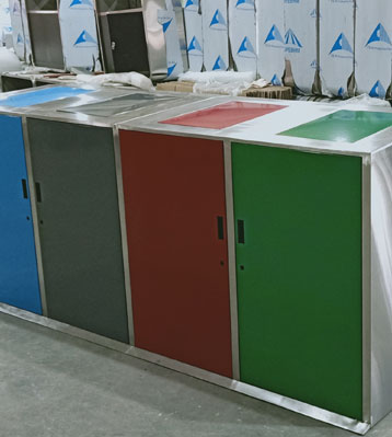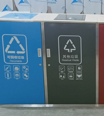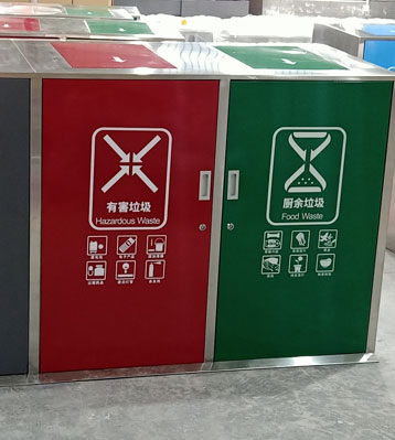 桶身面板紅、藍(lán)、綠、灰4色分別代表有害垃圾、可回收物、廚余垃圾、其他垃圾專用收集容器,分色烤漆絲印新標(biāo)準(zhǔn)垃圾分類標(biāo)識(shí),絲印新款垃圾分類標(biāo)識(shí)清晰醒目,有助從源頭垃圾精準(zhǔn)投放,便于后期分揀回收垃圾減量。