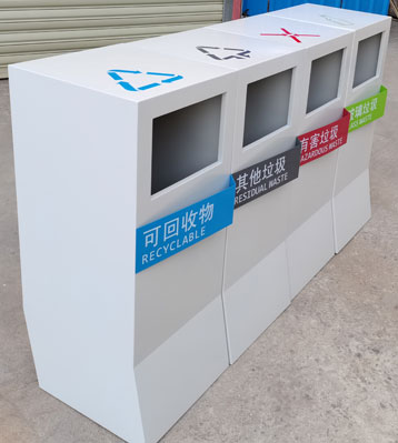 欣方圳不銹鋼四分類果皮箱組裝擺放圖