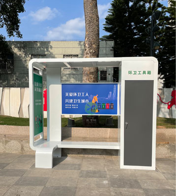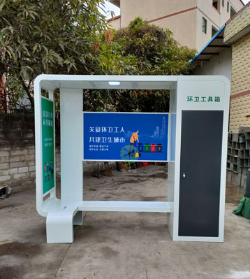 • 產(chǎn)品名稱:深圳環(huán)衛(wèi)工人休息亭驛站工具箱休息座椅