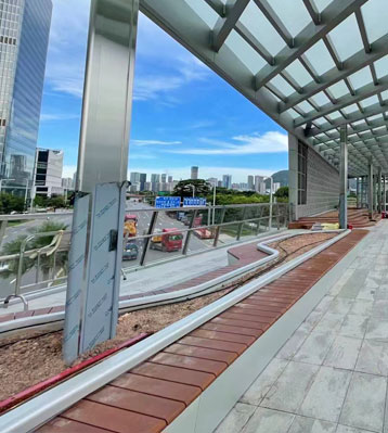 前海合作區(qū)跨街公園G9天橋廊橋景觀不銹鋼花池座椅街區(qū)竹木坐凳