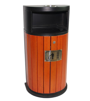 欣方圳戶外靠墻式鋼木單桶垃圾桶原材料