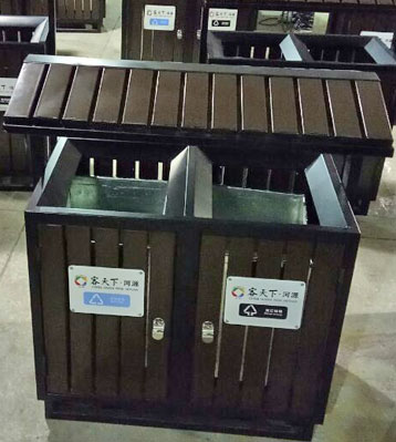 使用客戶:河源客天下景區(qū)鋼木垃圾桶 發(fā)布時間:2017-04-11