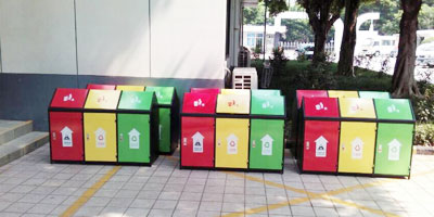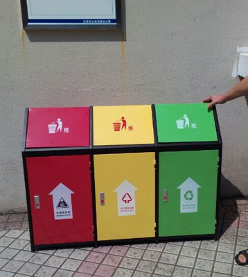 F139戶外鋼板四分類垃圾桶